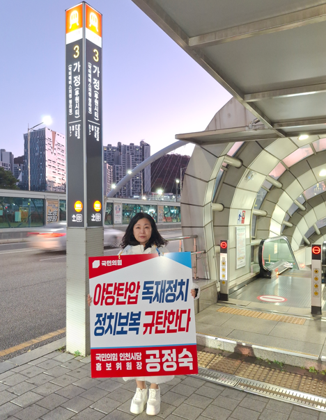 뉴스탑텐 김인환 기자 = 공정숙 전 인천서구의원이 100회에 걸친 1인 시위를 마무리하며 거리 정치를 통해 정치인의 책임과 역할을 다시 한 번 환기시켰다.