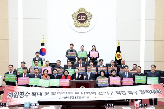 뉴스탑10 김인환 기자 = 인천시의회 정해권 의장(국·연수구1)은 12일 제306회 임시회 제5차 본회의 종료 후 ‘인천시의회 의원정수 확대 및 합리적인 도서지역 선거구 획정 촉구’ 결의대회를 개최하며, 오는 7월 1일 시행되는 행정체제 개편에 맞는 의원 정수 조정과 선거구 합리화 필요성을 강조했다.