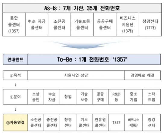 분산돼 있던 35개 상담전화도 ‘1357’ 단일 번호로 통합된다. 정책자금, 기술보증, 소상공인 지원 등 기능을 연계해 상담 목적에 따라 적합한 기관으로 자동 연결된다.