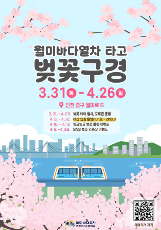 이번 특별 운영은 월미도 벚꽃 개화 시기에 맞춰 열차 연장 운행과 테마 콘텐츠 운영을 통해 시민들에게 봄철 볼거리와 체험 기회를 제공하기 위해 마련됐다.