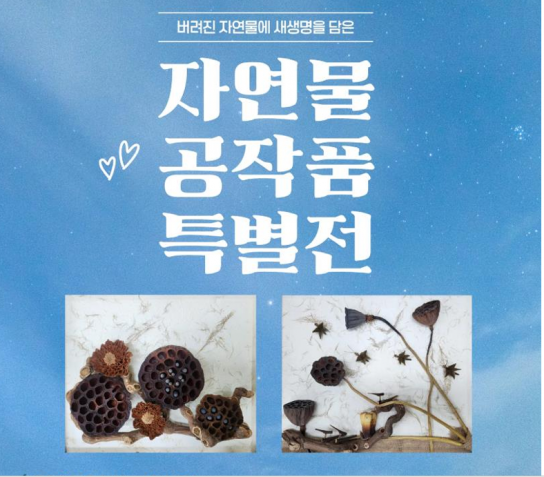 이번 전시는 ‘버려진 자연물에서 피어난 두 번째 생명’이라는 주제로 열리며, 자연물을 소재로 활용한 다양한 창작 작품들을 선보인다.