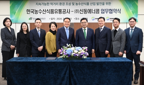 한국농수산식품유통공사(사장 김춘진)는 21일 서울 양재동 aT센터에서 우즈베키스탄 진출 한상(韓商) 기업인 ㈜신동에너콤(대표이사 회장 김윤식)과 지속 가능한 먹거리 환경조성과 농수산식품 산업 발전을 위한 업무협약을 체결했다.