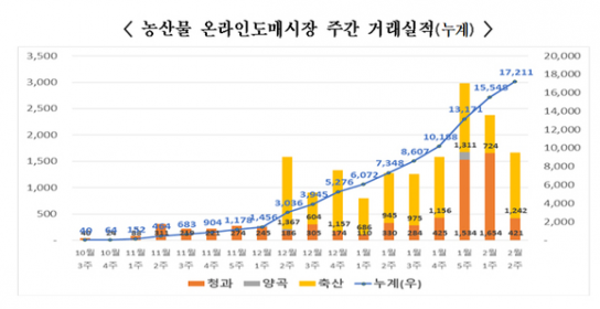 <농산물 온라인도매시장 주간 거래실적(누계). (자료=농림축산식품부)>