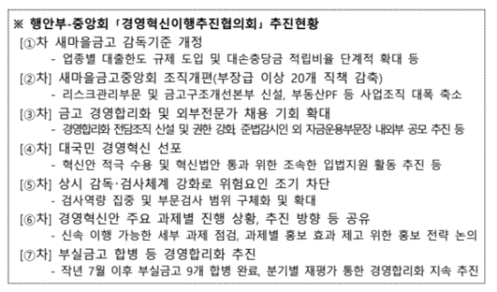이에 새마을금고중앙회는 행안부 지도·감독 하에 책임감 있는 경영혁신 이행을 위해 중앙회 내부에 별도의 TF를 구성해 운영하기로 했다.