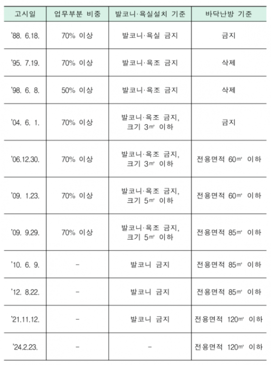오피스텔 건축기준 개정 연혁(자료=국토교통부)