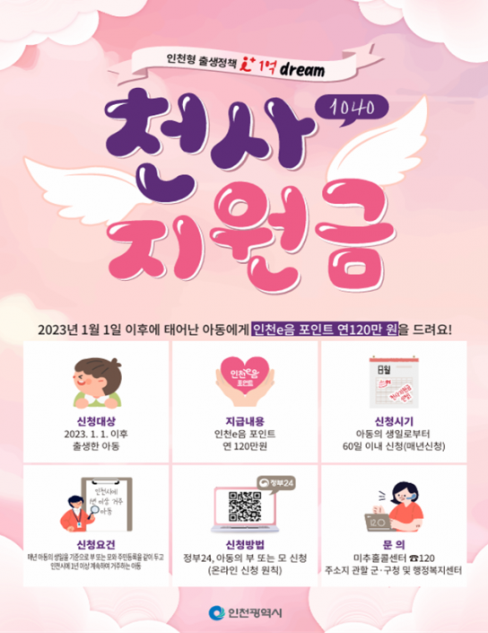 인천시, 천사지원금으로 양육 지원...1세부터 7세까지!