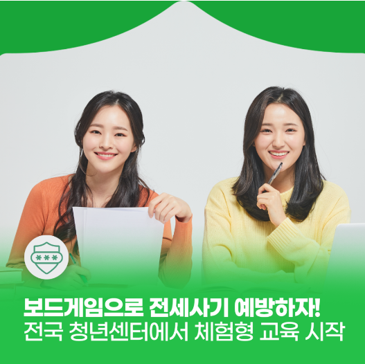 국토교통부와 한국부동산원은 주택도시보증공사 등과 협력해 청년센터에서 ‘보드게임형 전세사기 예방 교육’을 본격 추진한다고 2일 밝혔다. 해당 교육은 7월 대구광역청년센터에서 시작해, 전국 청년센터로 단계적으로 확대될 예정이다.