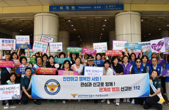 【뉴스탑10=김인환 기자】남양주북부경찰서가 남양주시청 등 9개 기관과 함께 퇴계원역에서 **‘관계성 범죄 예방 캠페인’**을 실시했다.