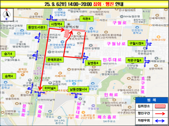 #인천경찰청 #도심권집회 #교통혼잡 #예술로정체 #남동대로집회 #인주대로행진 #교통경찰배치 #대중교통이용 #시민불편최소화 #뉴스탑10
