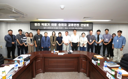 【뉴스탑10=강숙영 기자】인천 서구의회 김원진 의원(청라1·2동, 더불어민주당)이 지난 12일 서구의회 2층 의원간담회장에서 ‘청라 학원가 아동 승하차 교통안전 간담회’를 주재했다. 이번 간담회는 학원버스의 상습적인 불법주정차로 아동들의 교통안전이 위협받는 문제를 해결하기 위해 관계 기관과 학원, 지역 주민들이 머리를 맞댄 자리였다.