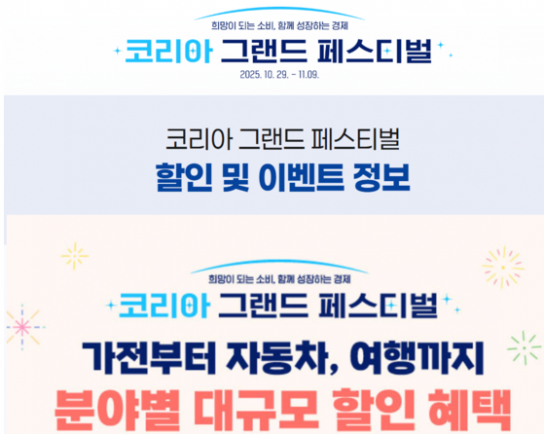 이대건 중기부 소상공인정책관은 “이번 코리아 그랜드 페스티벌은 국민이 직접 참여하고 체감할 수 있는 소비축제”라며 “누리집과 카카오톡 채널을 통해 전국 어디서나 간편하게 정보와 혜택을 확인할 수 있을 것”이라고 밝혔다.