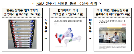 ‘범부처 첨단 의료기기 연구개발사업(1기)’은 이미 인공신장용 혈액여과기의 국산화, AI 기반 뇌경색 진단보조 소프트웨어 개발 등 세계적 성과를 거두며 주목받았다. 이번 2기 사업은 이러한 성과를 기반으로 글로벌 시장 진출을 확대할 계획이다.