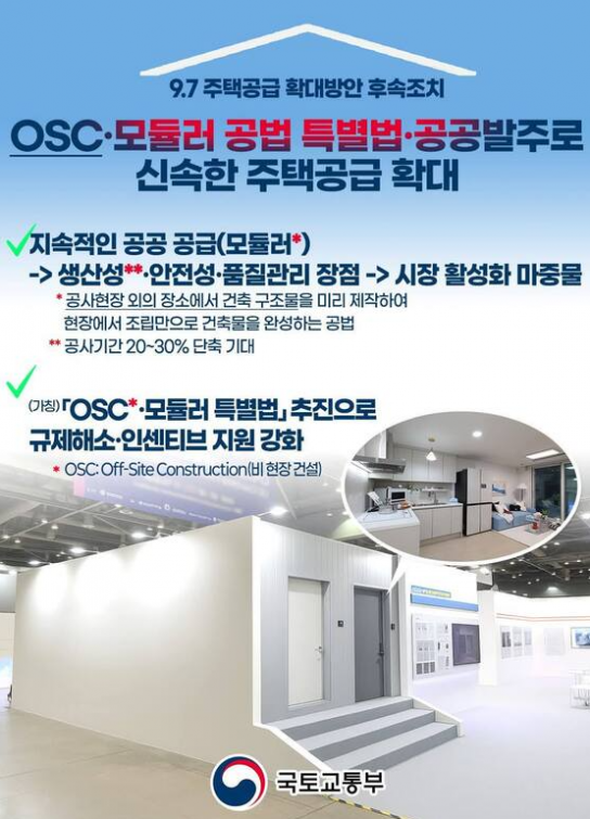 #모듈러공법 #OSC특별법 #국토교통부 #공공주택 #스마트주거 #AI엑스포 #LH #주택공급정책 #RND투자 #뉴스탑10