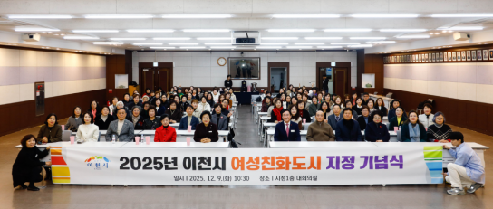 이천시(시장 김경희)는 지난 9일 시청 대회의실에서 ‘2025년 여성친화도시 지정 기념식’을 개최하고, 성평등가족부로부터 여성친화도시로 공식 지정된 사실을 알렸다.
