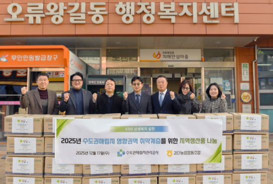 뉴스탑10 김인환 기자 = 수도권매립지관리공사(SLC, 사장 송병억)는 지역 내 취약계층의 생활 안정을 돕고 지역상생과 복지를 강화하기 위해 인천 검단농협과 함께 ‘2025년 영향권 취약계층 농식품 꾸러미 지원사업’을 추진했다고 17일 밝혔다.