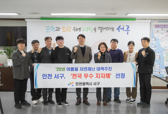 뉴스탑10 강숙영 기자 = 인천광역시 서구가 행정안전부가 실시한 ‘2025년 여름 자연재난 대책추진(호우) 평가’에서 우수 지방정부로 선정되며 특별교부세 2억 원을 지원받는다.