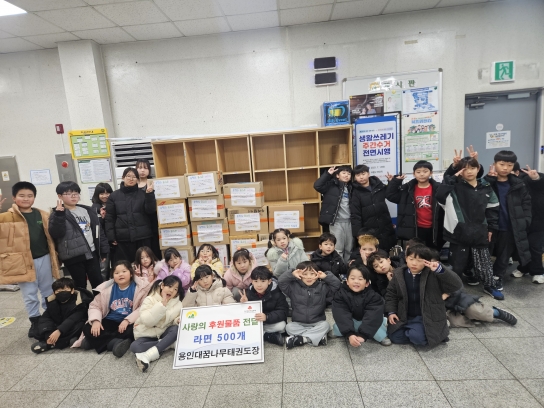 연말을 맞아 용인대꿈나무태권도장(관장 조성훈) 원생들은 어려운 이웃에게 따뜻한 마음을 전달하고자 십시일반 후원 물품을 모았다.