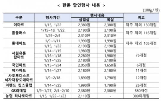 국내산 삼겹살과 목살은 지난 8일부터 전국 9개 대형마트와 100여 개 슈퍼마켓, 농축협 하나로마트 등을 통해 최대 30% 할인된 가격으로 판매되고 있다. 명절을 앞두고 수요가 늘어나는 주요 품목을 중심으로 소비자 체감 물가를 낮추겠다는 취지다.