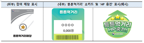 매장 외부에는 ‘튼튼먹거리 매장’ 표지가 부착되고 내부 진열대에는 초록색 ‘튼튼먹거리’ 쇼카드와 안내 표시가 설치돼 소비자들이 해당 제품을 쉽게 구별할 수 있도록 했다.