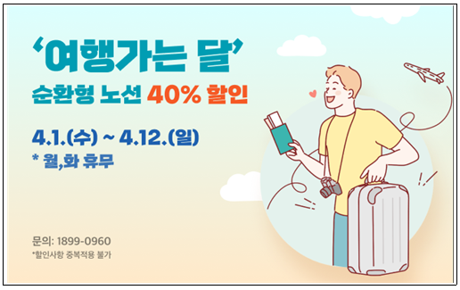 할인 기간 동안 순환형 노선 이용권을 정상가 대비 40% 할인된 가격으로 구매할 수 있다. 다만 월요일과 화요일은 정기 휴무로 운행하지 않으며, 다른 할인 혜택과 중복 적용은 불가능하다.