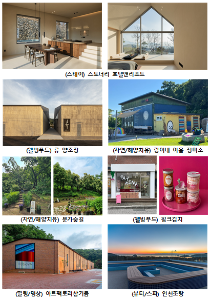이번에 선정된 관광지는 강화 지역을 중심으로 자연경관과 전통 체험, 숙박, 명상 프로그램 등을 운영하는 체류형 관광지들이다. 전통 양조 체험, 숲길 체험, 명상 프로그램, 리조트 휴식 프로그램 등 다양한 치유 콘텐츠를 체험할 수 있는 것이 특징이다.