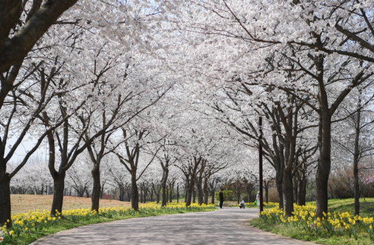 현장에는 약 2km에 달하는 왕벚나무 벚꽃 터널이 조성됐으며, 그 아래로 수선화 꽃길이 이어져 다양한 봄꽃 풍경을 동시에 즐길 수 있다.