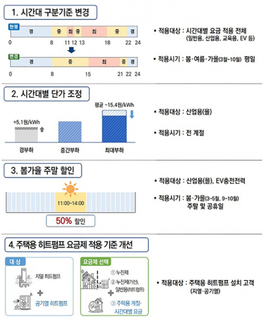 이에 따라 평일 낮 시간대 요금 부담은 줄고, 저녁 시간대 요금은 올라간다. 자연스럽게 전기 사용이 낮으로 이동하도록 유도하는 구조다.