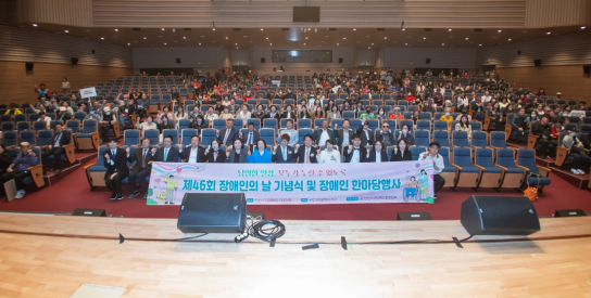 행사는 식전 공연을 시작으로 개회선언, 유공자 표창, 축사, 화합 프로그램 순으로 진행됐으며, 장애인과 가족, 복지시설 관계자 등 약 400여 명이 참석했다.