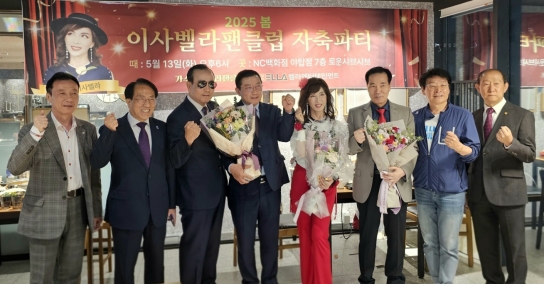 【뉴스탑10=김인환 기자】 가수 이사벨라가 팬들과 함께 감동의 시간을 나눴다. 지난 13일 오후 6시, 분당 야탑동 NC백화점 7층 로운샤브샤브에서 열린 ‘2025 봄 이사벨라 팬클럽 자축파티’가 성황리에 개최됐다.