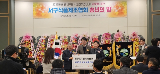 뉴스탑텐 김인환 기자 = 인천서구식품제조협회가 송년회를 기부와 나눔의 자리로 확장하며 지역사회와의 연대를 강화했다.